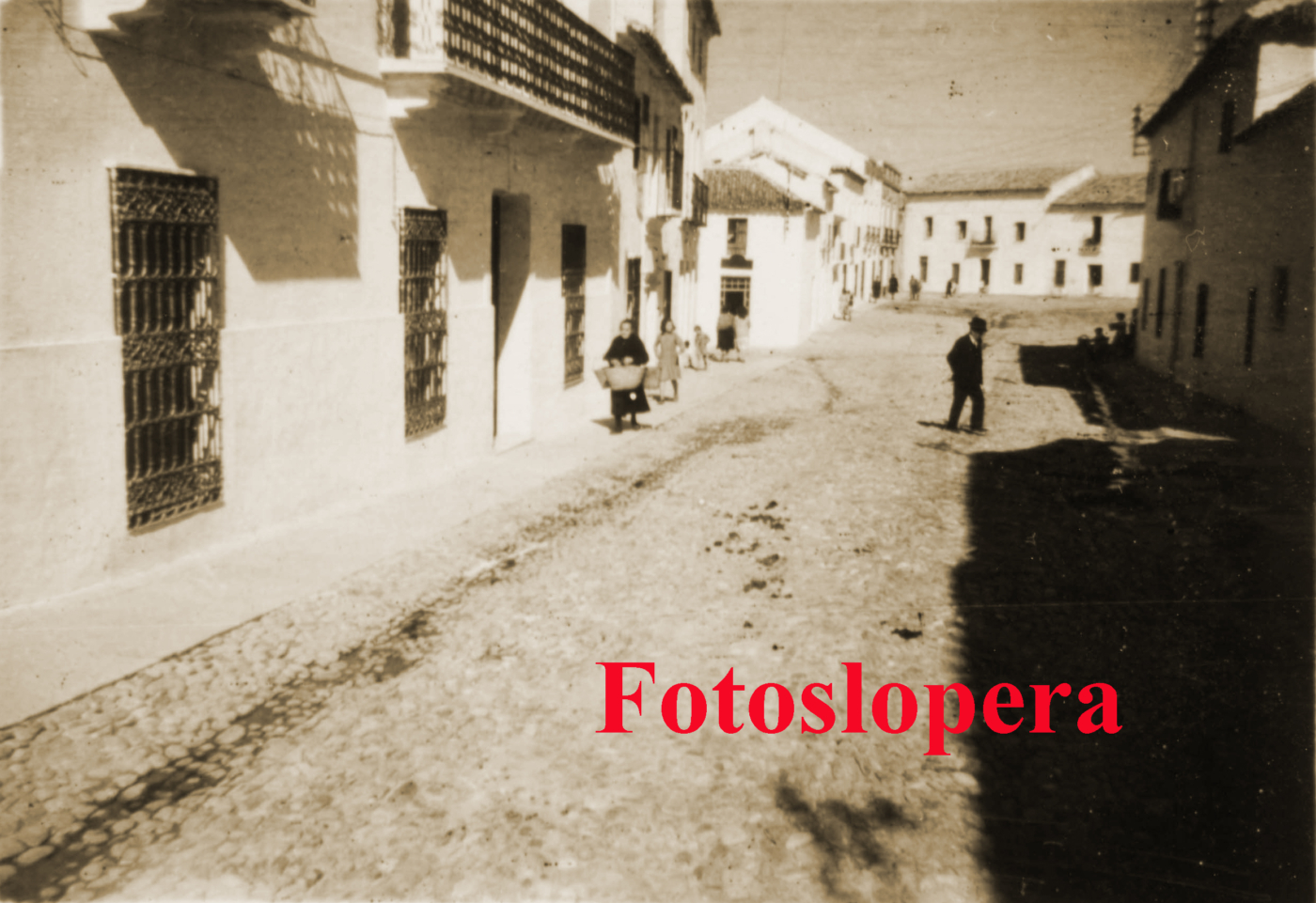 Buenos días Lopera. Paseo matinal por el pasado de calles y plazas de Lopera. Hoy por la calle Echegaray toda empedrada (Hoy Vicente Orti Peralta) Al fondo el Altozano y a la izquierda la Expendeduría de tabacos de Luisa Quero Sánchez. 00000