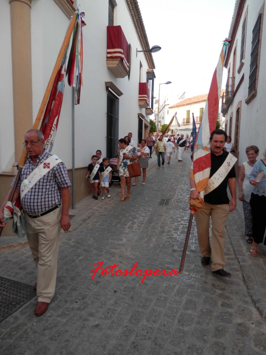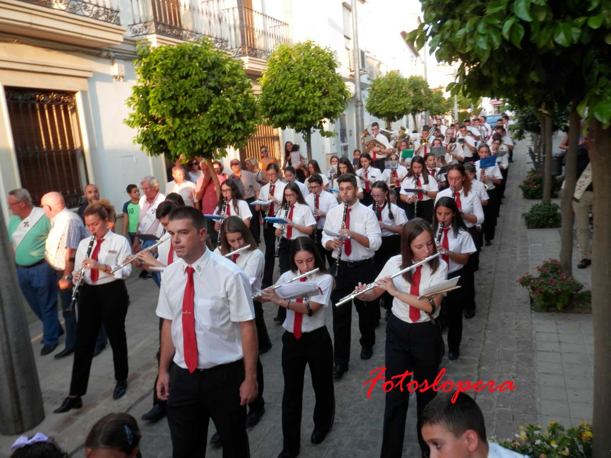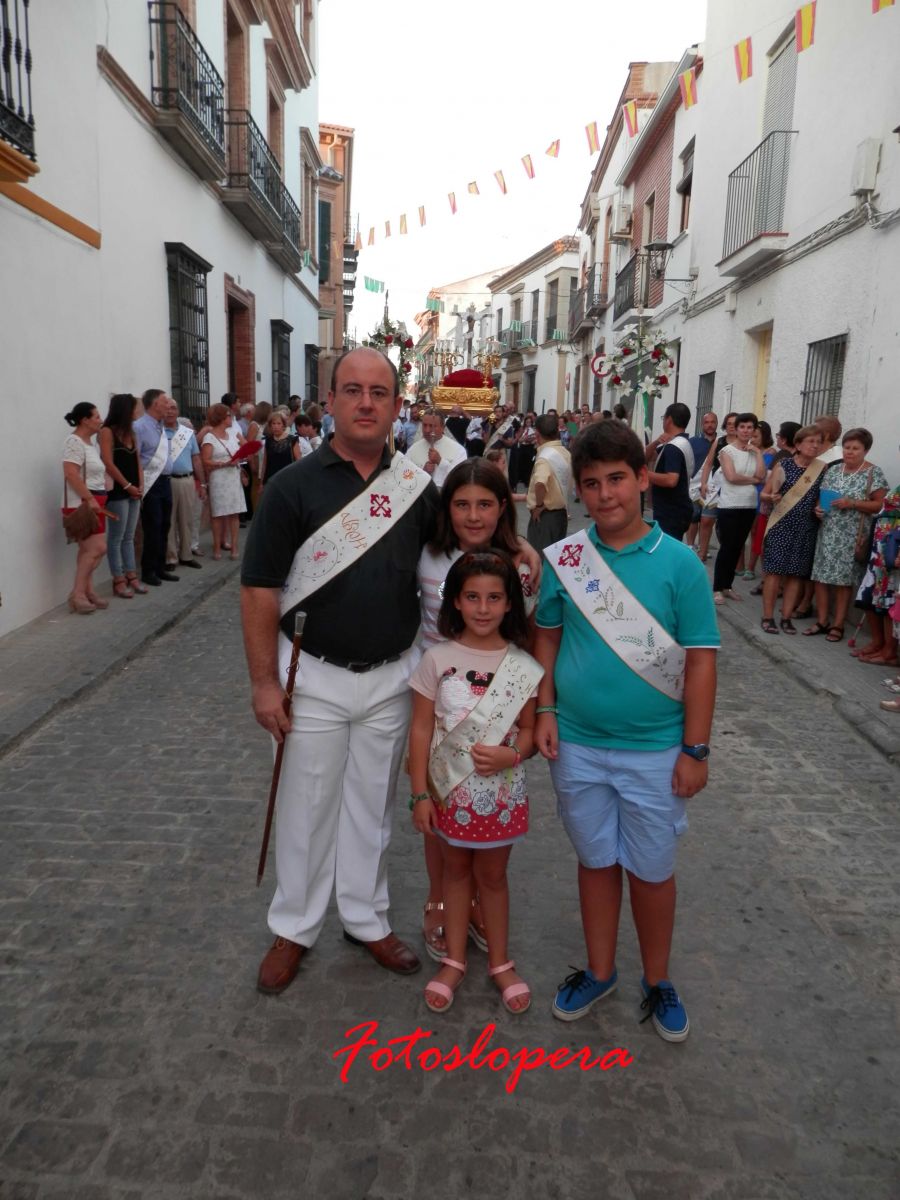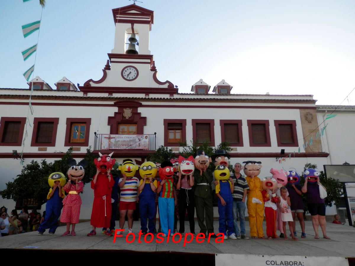 Cuando por motivos de trabajo tuve que salir de Lopera, casada y con mi niño pequeñito, mi anhelo era esperar con paciencia en otros pueblos, que no era el mío la llegada del verano, para poder estar en mi pueblo, con sus gentes, con sus costumbres, gentes trabajadoras que luchan día a día por una vida mejor, por un pueblo mejor, para mí, fueron tiempos difíciles, muy difíciles siempre llevando a mi Lopera por bandera y siempre queriendo estar en él. Tuve la gran suerte de conseguirlo, después de muchos años de esfuerzo y algún que otro llanto, conseguir estar ejerciendo mi tan querida profesión aquí, enseñando en mi aula a los niños y niñas de mi pueblo a los que tanto quiero, porque pasen por mis manos generaciones y generaciones de niños a todos los quiero por igual, me encanta que me saluden por la calle y que al oído, y para que no se entere nadie me digan:¡ te quiero seño!, y como no, un abracito que otro también cae, me hacen sentirme orgullosa, feliz y llena de entusiasmo año tras año. Por cierto, entre estas guapísimas damas de honor, una de ellas, fue una de mis primeras niñas de tres añitos en el cole, cuando vine como maestra, maestra ¡qué bonita palabra¡¡ Madre mía! Como pasa el tiempo, fijaos ya es toda una mujer, ella y todas las demás, guapas y primorosas haciendo gala de la belleza y el saber estar de la mujer Loperana.