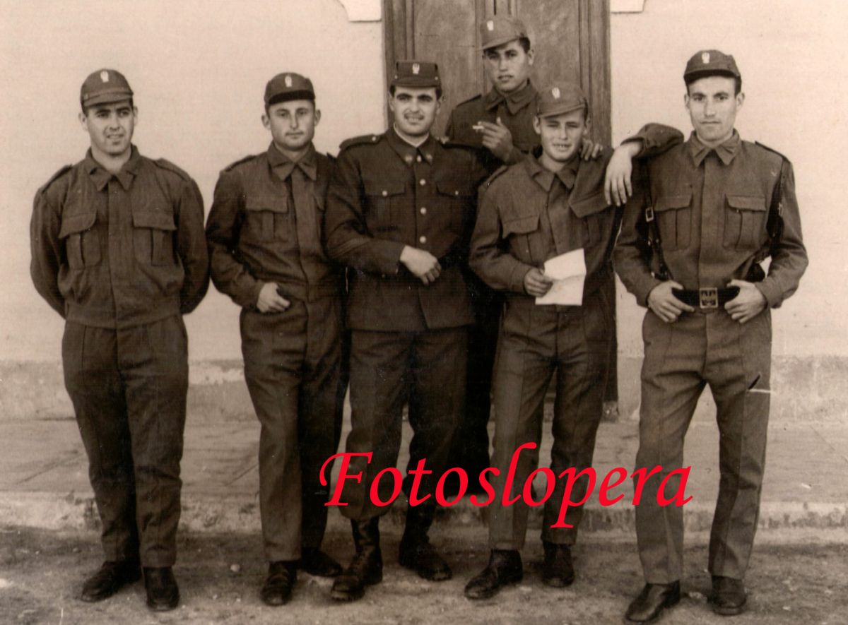 Grupo de loperanos haciendo el Servicio Militar en el Campamento de Viator (Almería). Año 1965